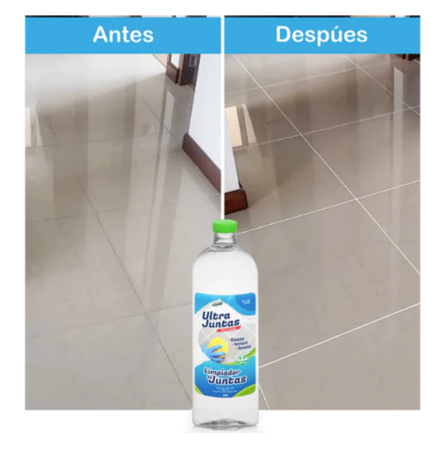 Pisos impecables al instante Llegaste al lugar indicado juntas relucientes Especializado para blanquear restaurar y renovar superficies en cer mica granito azulejo baldosa baldos n en porcelanato Su f rmula concentrada limpia desincrusta desmancha higieniza y blanquea las juntas lavamanos inodoros y orinales recomendamos no utilizarlo en colores Removiendo lama sarro moho y manchas de corrosi n adheridas a la superficie No contiene cloro ni Amoniaco 500ml LimpiajuntasEl producto incluye atomizador Modo de Uso Agitar antes de usar Aplicar directamente sobre la junta Dejar actuar durante 1 a 2 minutos Refregar el rea Retirar el producto Trapero agua pa o PRECAUCIONESNo usar en cer micas de colores ni oscuros No usar en M rmol Si el piso es de porcelanato debes probarlo antes porque no en todos funciona de la mejor manera No mezclar con otros productos ya que puede generar fuerte reacci n qu mica Usar guantes obligatoriamente Evitar el contacto con los ojos y piel Si llegase a ocurrir enjuague con abundante agua si la irritaci n persiste consulte de inmediato con su m dico NO MEZCLAR CON OTROS PRODUCTOS Mantener fuera del alcance de los ni os En caso de ingerir accidentalmente beba agua y busque atenci n m dica de inmediato en caso de intoxicaci n lleve al m dico esta etiqueta No inhale el producto No reutilice este envase para otros usos